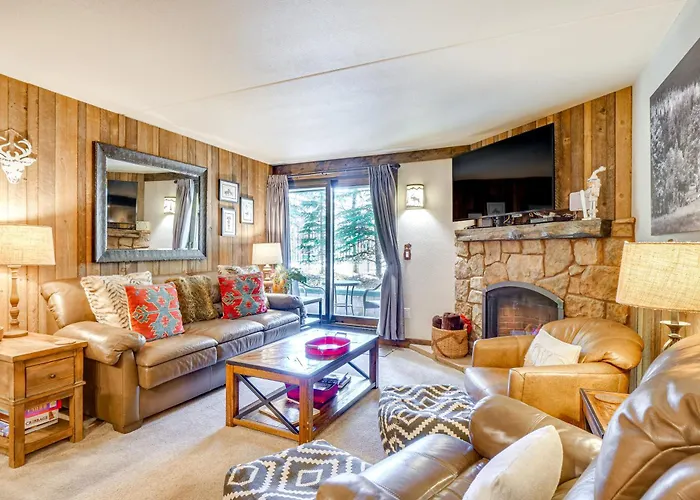 O Breck Ski-Inandski-Out Condo Near Main Street! Breckenridge de 56 m² está localizado a uma distância de apenas 650 metros de Blue River Plaza e a aproximadamente 25 minutos a pé de Breckenridge Recreation Center. Este apartamento de 1 quartos recebe os hóspedes com jacuzzi e sauna a alguns passos de South Main Street.